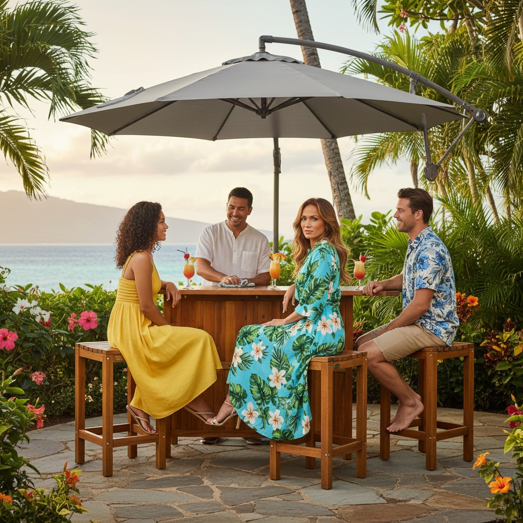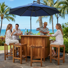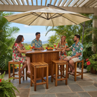 This beautiful Waikiki High Bar Wood Table and Stools are handmade with plantation-grown Acacia wood. Creating a simple, yet elegant look for lawn, lanai and poolside settings.