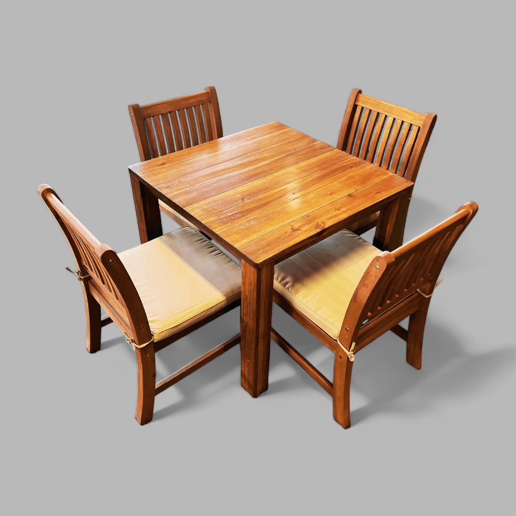 • The set includes (1) Kula Square Table, (4) Kahala Side Chairs (cushions included)