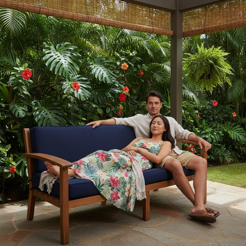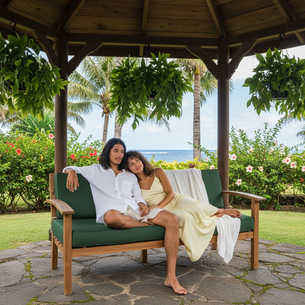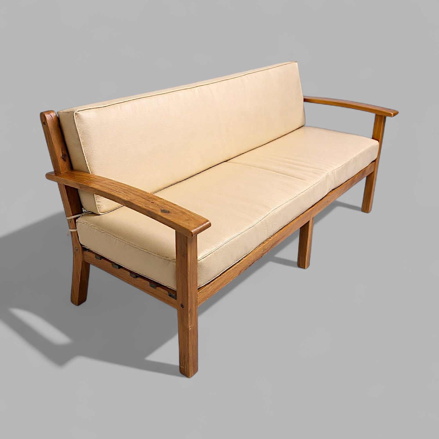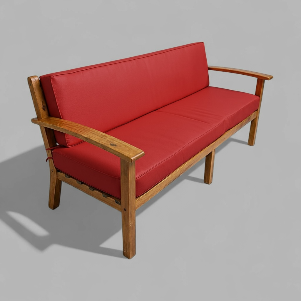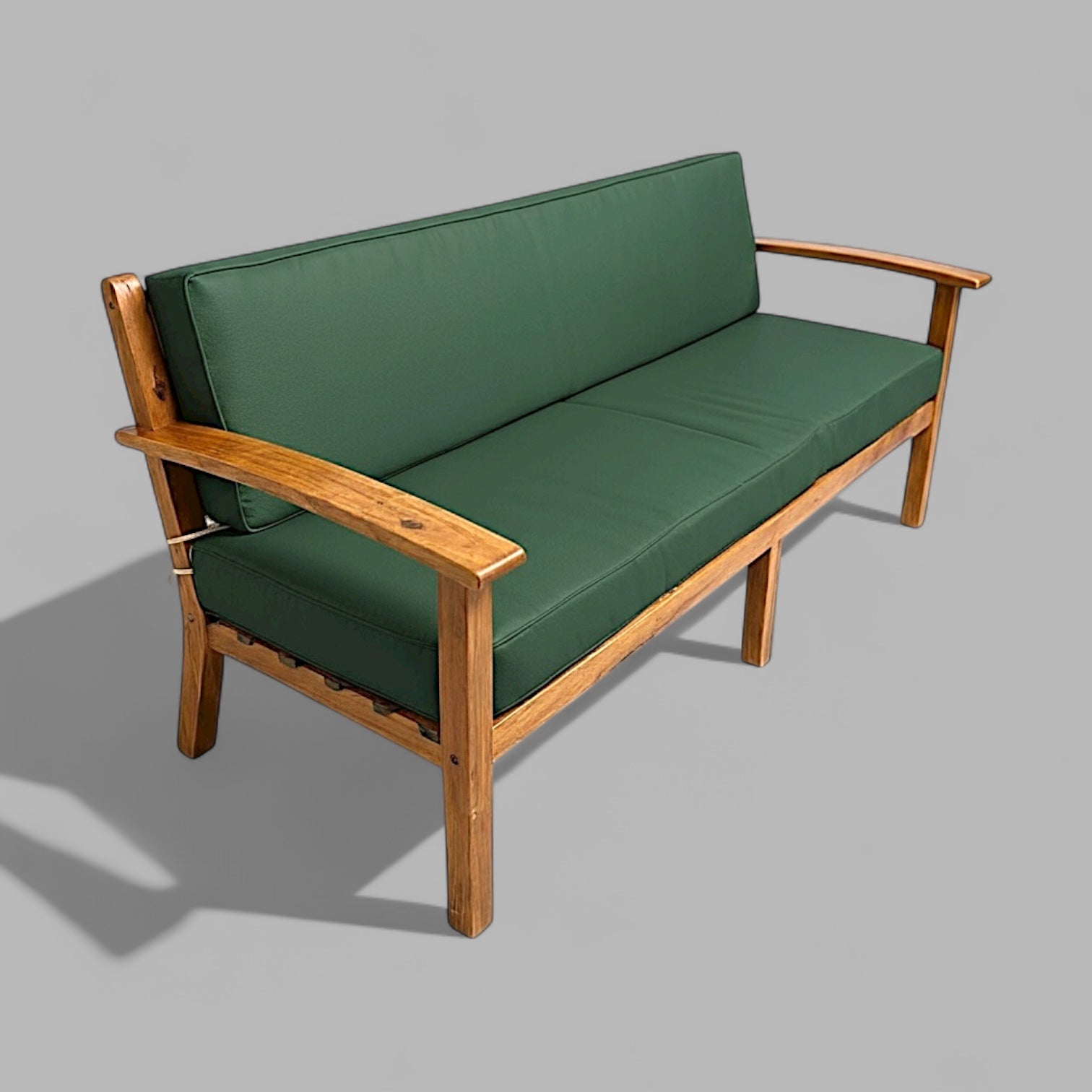 Hilo Sofa is handmade with plantation-grown Acacia wood. Perfect for poolside, lawn, lanai and even indoor living. 5" Cushion included. Makes a complete set with the Hilo Armchair and Hilo Ottoman.