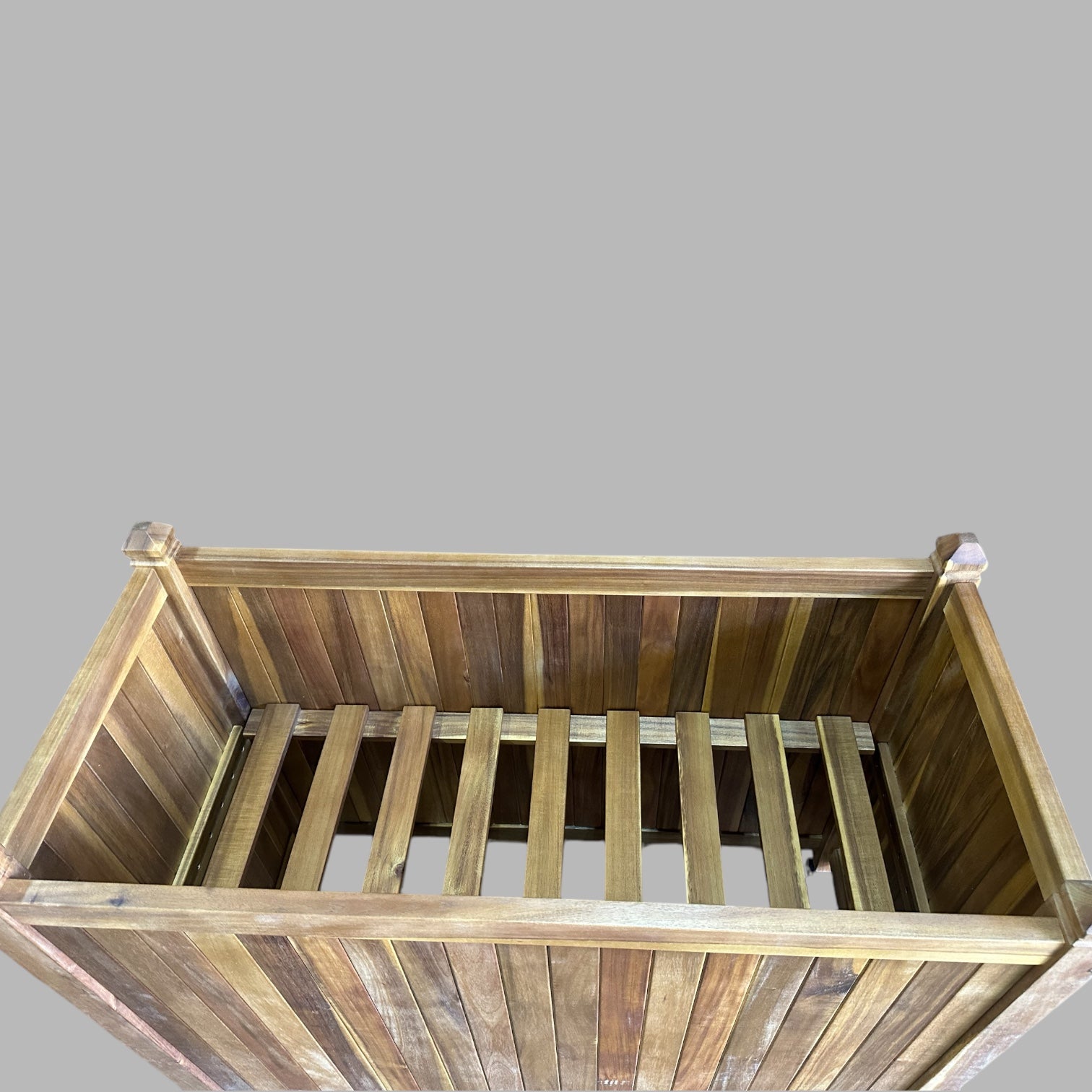 This simple yet sturdy planter is handmade with plantation-grown Acacia wood. Perfect for indoor or outdoor use. The Planter comes with rolling wheels with 2 locking wheels making it perfect outdoor furniture for restaurants or Cafes. Planters can easily follow the sun and can be easily moved inside/outside with the change of seasons, weather, or functional needs.