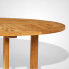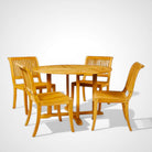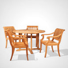 Count on a reliable outdoor gathering spot with the Curtis Teak Outdoor Dining Table with Umbrella Hole and Palm Arm Chairs. This set is entirely made of natural teak wood with a rounded top that lends a warm and welcoming look. Its natural composition is cleanly designed and simple enough to add to any patio décor style while offering a durable, weather-resistant furniture piece. An umbrella hole at its center makes this piece perfect for outdoor lounging in any weather. Set includes Curtis Dining Table and (4) or (6) Palm Arm Chairs.