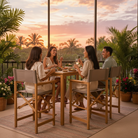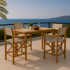 The Kilohana Counter Height Teak Bistro Set combines contemporary inspiration with modern functionality, crafted from premium teak for enduring style and durability. This versatile set features a counter-height table ideal for outdoor dining, whether by the pool, on the patio, or in an outdoor kitchen. The Director Chairs feature the same sturdy folding frame made from premium teak and a durable seat and back sling for long-lasting comfort.