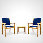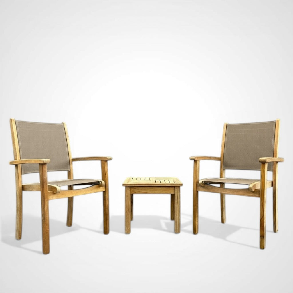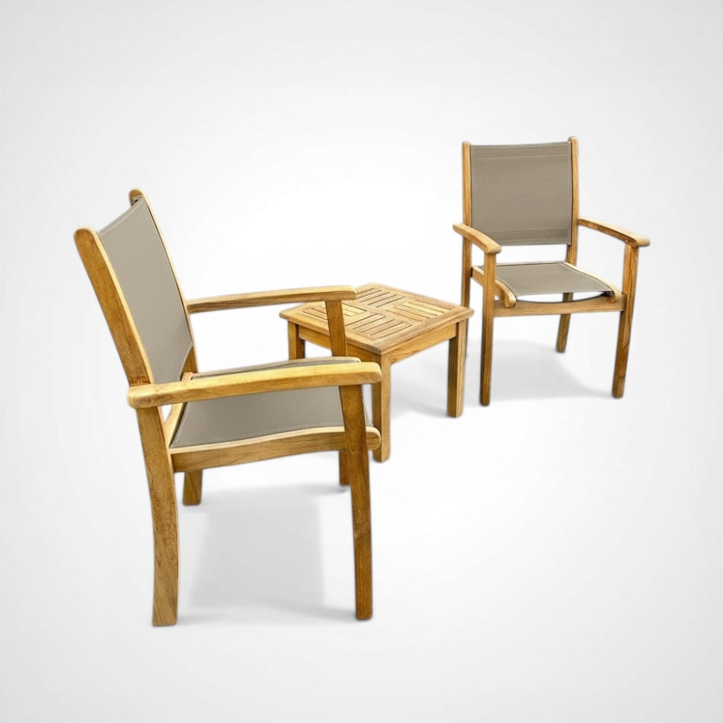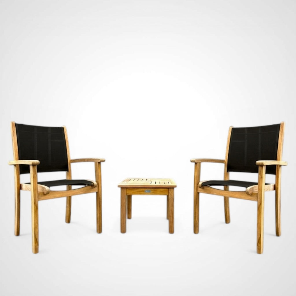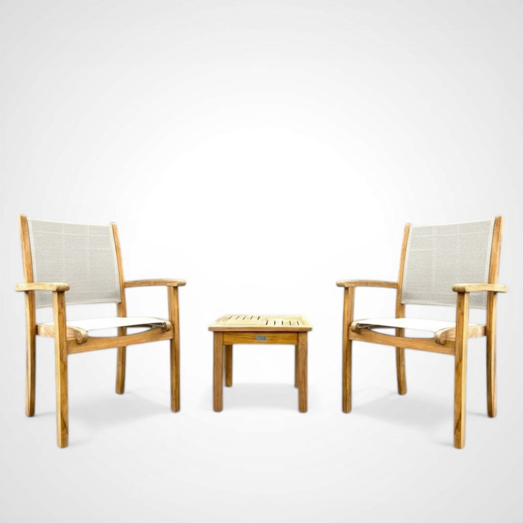 Ahiahi means Evening in Hawaiian. Wind down the day with this beautiful Grade-A teak small area set. The set includes two chairs and a side table. Choose from one of these seating options: