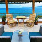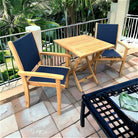 Kakahiaka means Morning in Hawaiian. Start the day sipping a cup of coffee with this beautiful Grade-A teak small area set. The set includes two chairs and a Square folding table. Choose from one of these seating options: