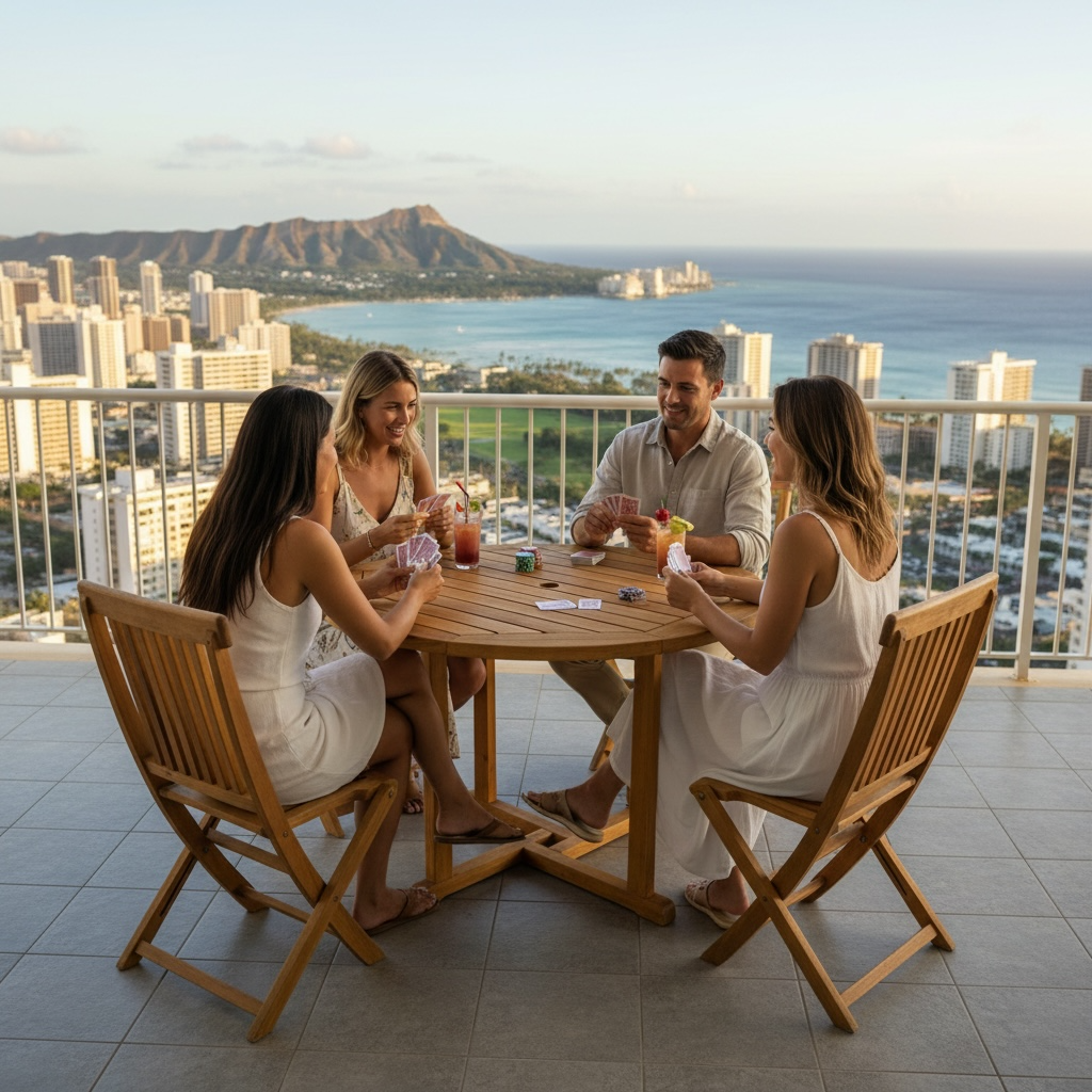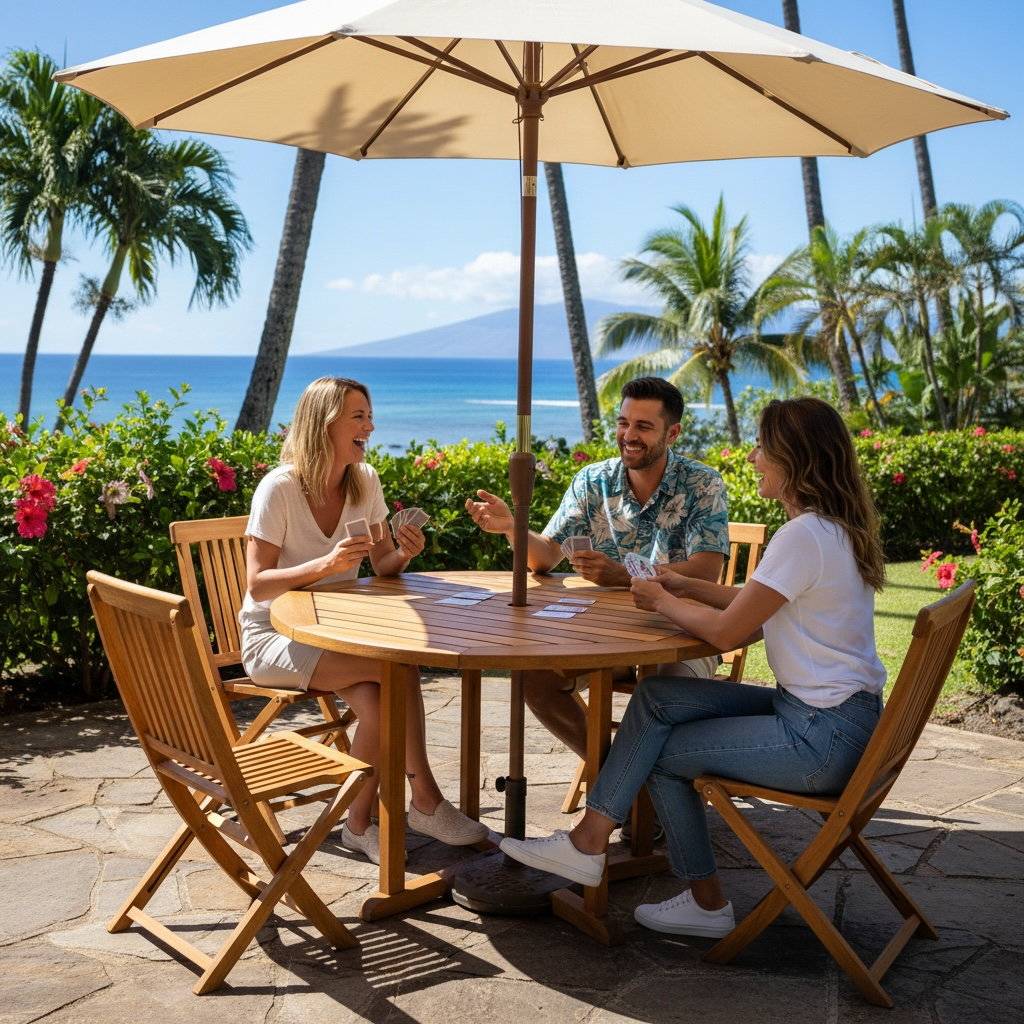 - The set includes (1) Round Table and (4) Hanalei Folding Chairs (with or without arms).