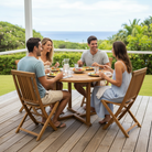 This beautiful Round Table & Chair Set is handmade with plantation-grown Acacia wood. Perfect for indoor or outdoor use, and configures to multiple seating configurations for all of your guests.