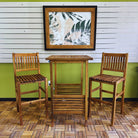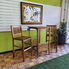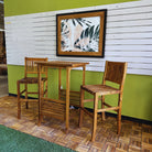 These beautiful High Bar Stools and Table are handmade with plantation-grown Acacia wood.  Creating a simple, yet elegant look for lawn, lanai and poolside settings.