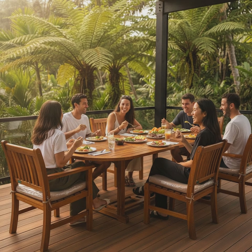 This beautiful multi-purpose Oval Extension Table Set is handmade with plantation-grown Acacia wood. Perfect for indoor or outdoor use, and configures to multiple seating configurations for all of your guests. This table can seat up to 6-8 people when fully extended, and pairs well with the Kahala Side Chair or Kahala Armchair.