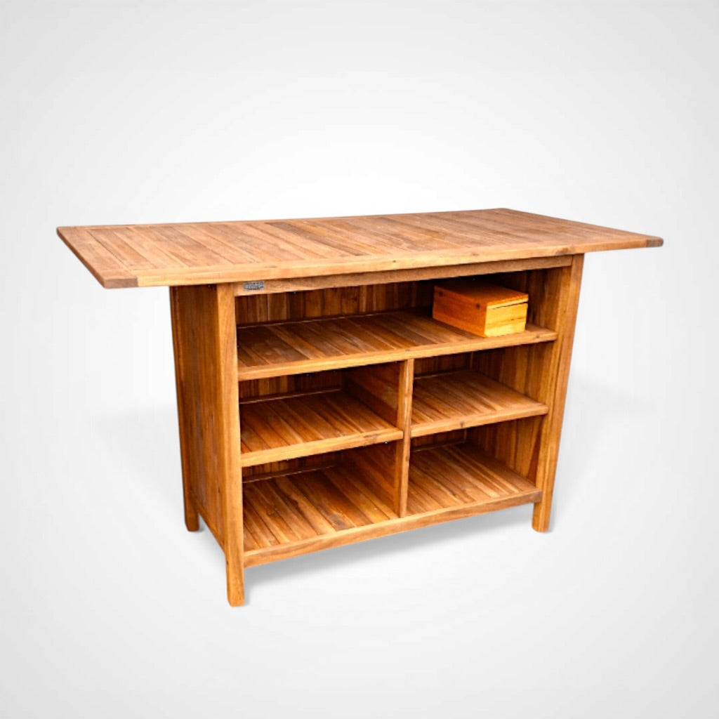 This beautiful Waikiki High Bar Wood Table and Stools are handmade with plantation-grown Acacia wood. Creating a simple, yet elegant look for lawn, lanai and poolside settings.