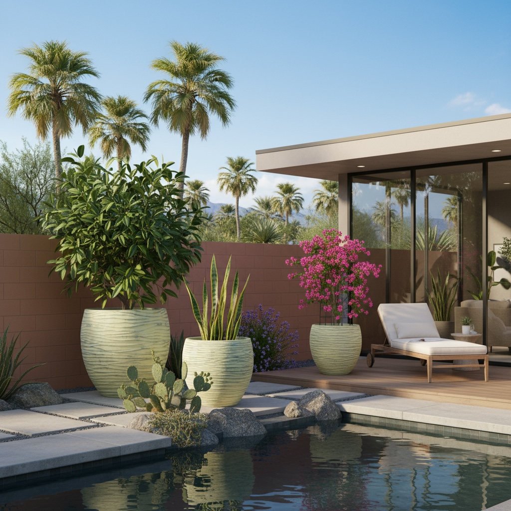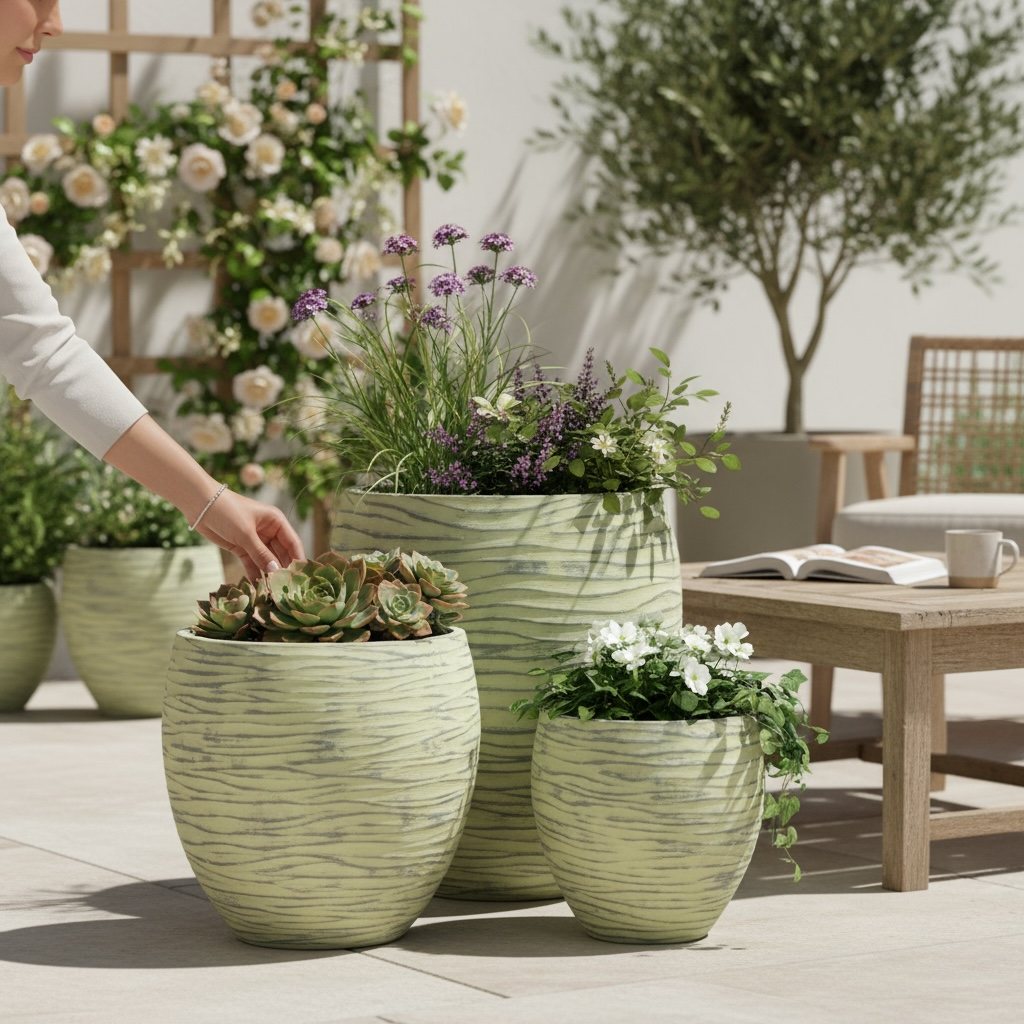 These uniquely washed design planters are produced by innovatively mixing cement and sand. Not only is this a environmentally friendly product, but also lite-weight. The finished planter produces a wave pattern and provides an eclectic ambiance to any outdoor environment.