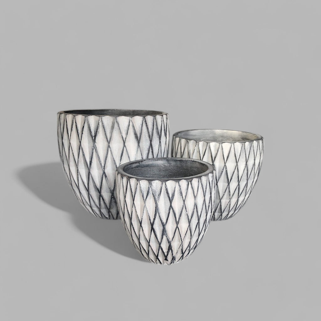 These uniquely washed design planters are produced by innovatively mixing cement and sand. Not only is this a environmentally friendly product, but also lite-weight. The finished planter produces a wave pattern and provides an eclectic ambiance to any outdoor environment.