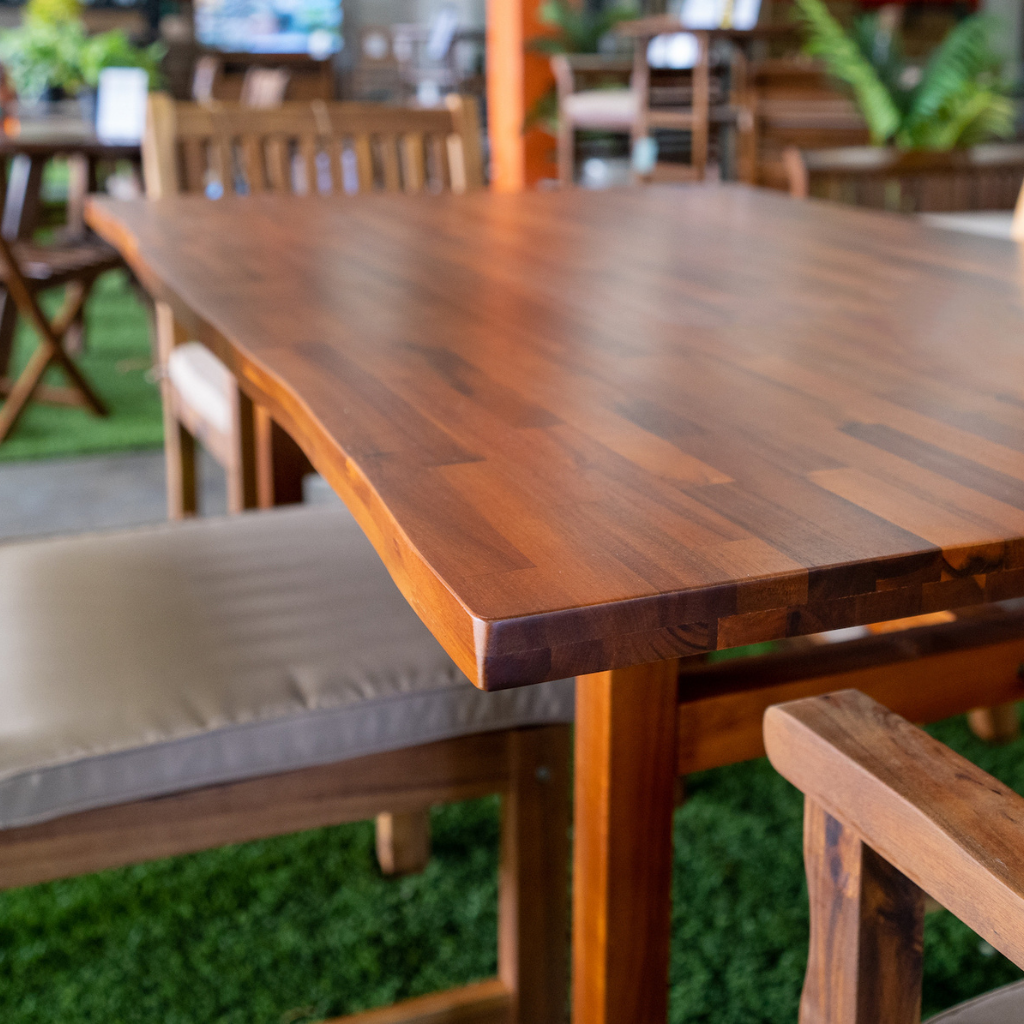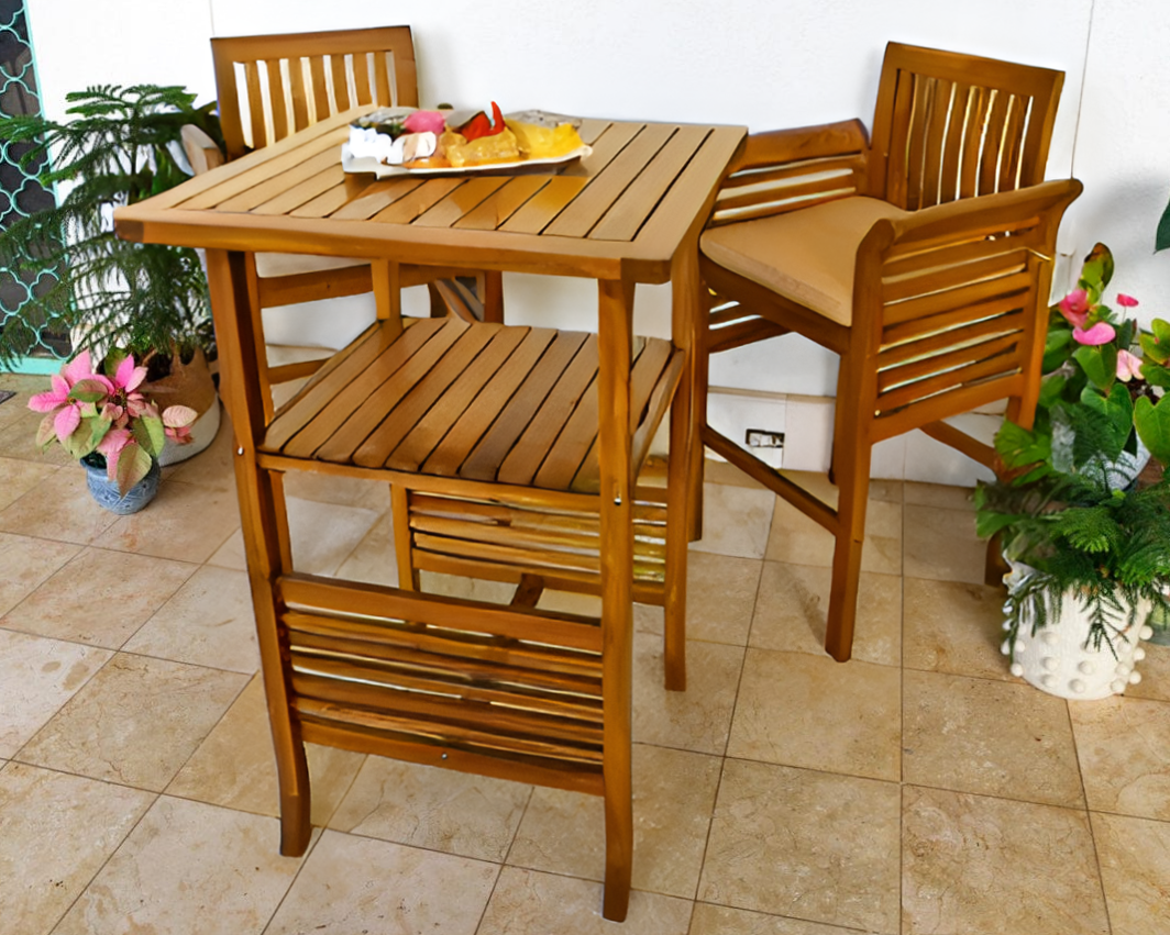 This beautiful Waikiki High Bar Wood Table and Stools are handmade with plantation-grown Acacia wood. Creating a simple, yet elegant look for lawn, lanai and poolside settings.