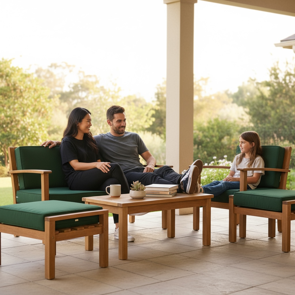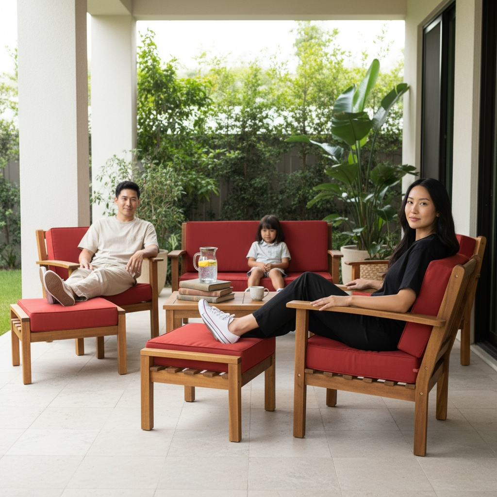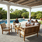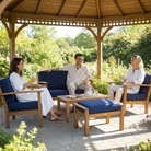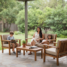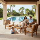 This beautiful Hilo Set is handmade with plantation-grown Acacia wood. Creating a simple, yet elegant look for lawn, lanai and poolside settings. Enjoy the comfort of the extra thick cushions for the seating.