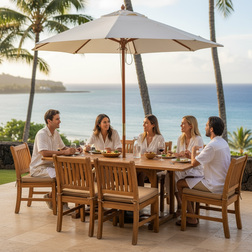 This beautiful multi-purpose Rectangular Extension Table Set is handmade with plantation-grown Acacia wood. Perfect for indoor or outdoor use, and configures to multiple seating configurations for all of your guests. This table can seat up to 6-8 people when fully extended, and pairs well with the Kahala Side Chair or Kahala Armchair.