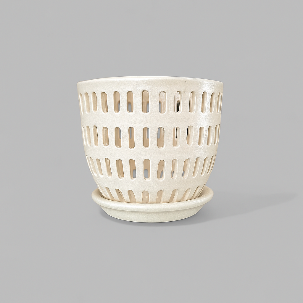 Designed especially for orchids, the Liko Pot also pairs beautifully with anthuriums, succulents, and small tropical greens. Its glazed ceramic surface reflects light gracefully, highlighting the vivid colors and soft textures of your plants.