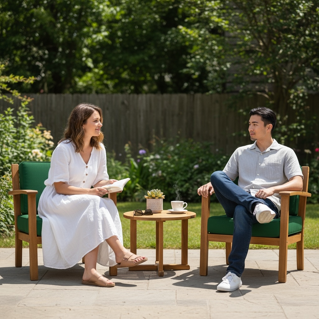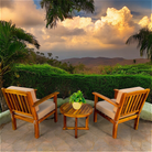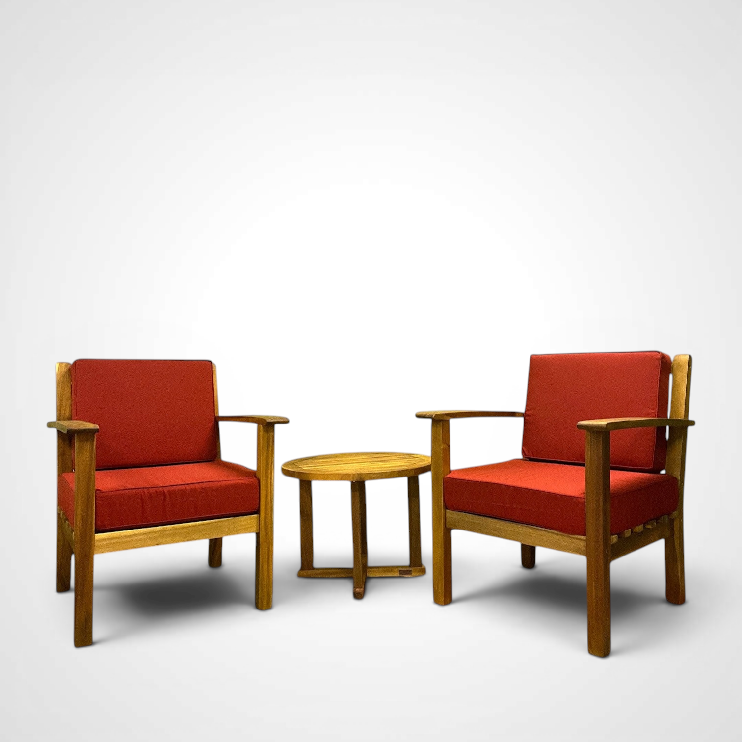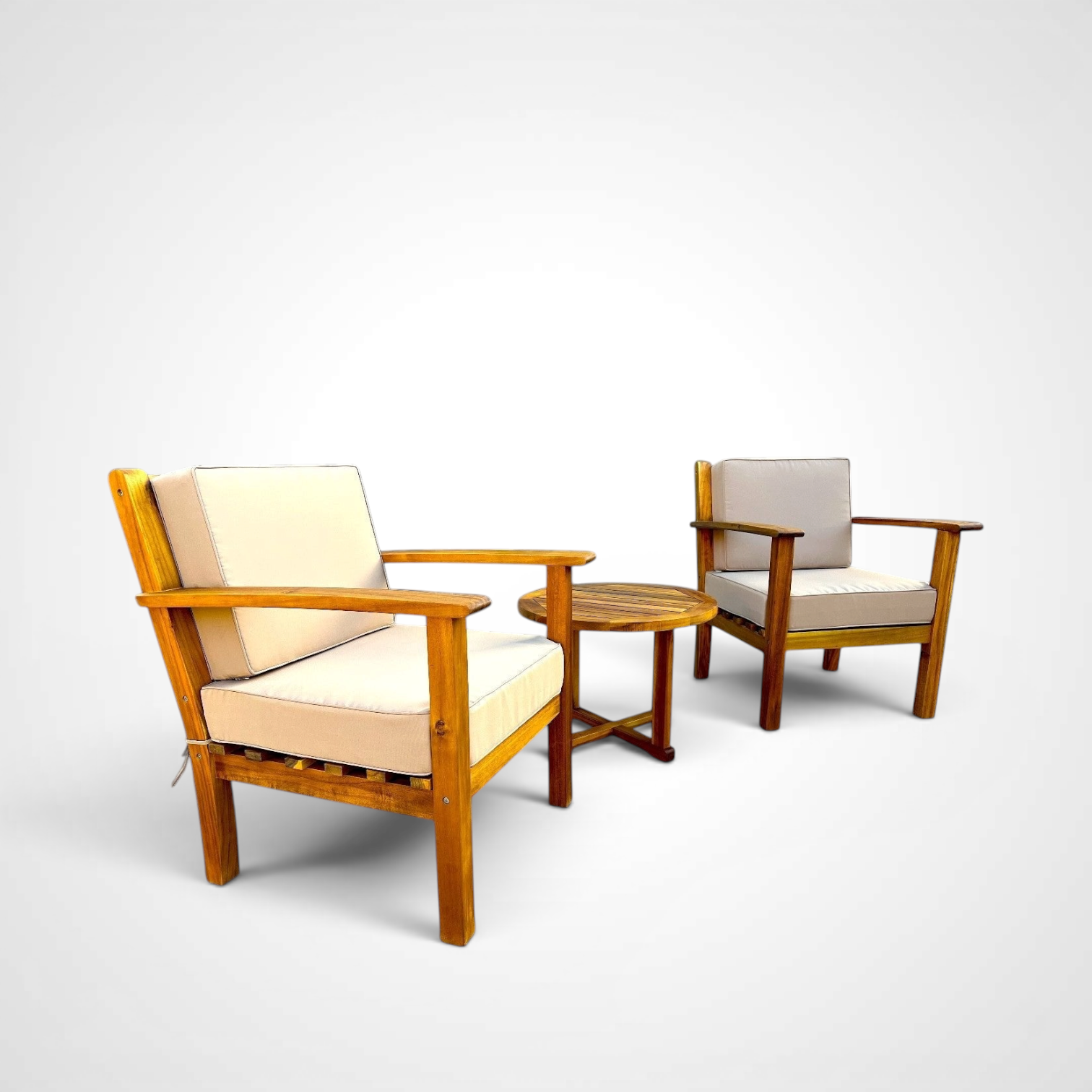 This beautiful Hilo Set is handmade with plantation-grown Acacia wood. Creating a simple, yet elegant look for small area settings. Enjoy the comfort of the extra thick cushions for the seating.