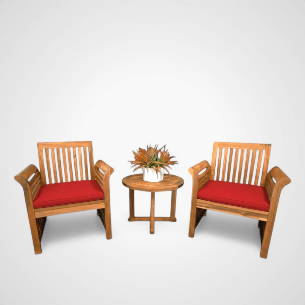 This beautiful Riviera Set is handmade with plantation-grown Acacia wood. Creating a simple, yet elegant look for small area settings.
