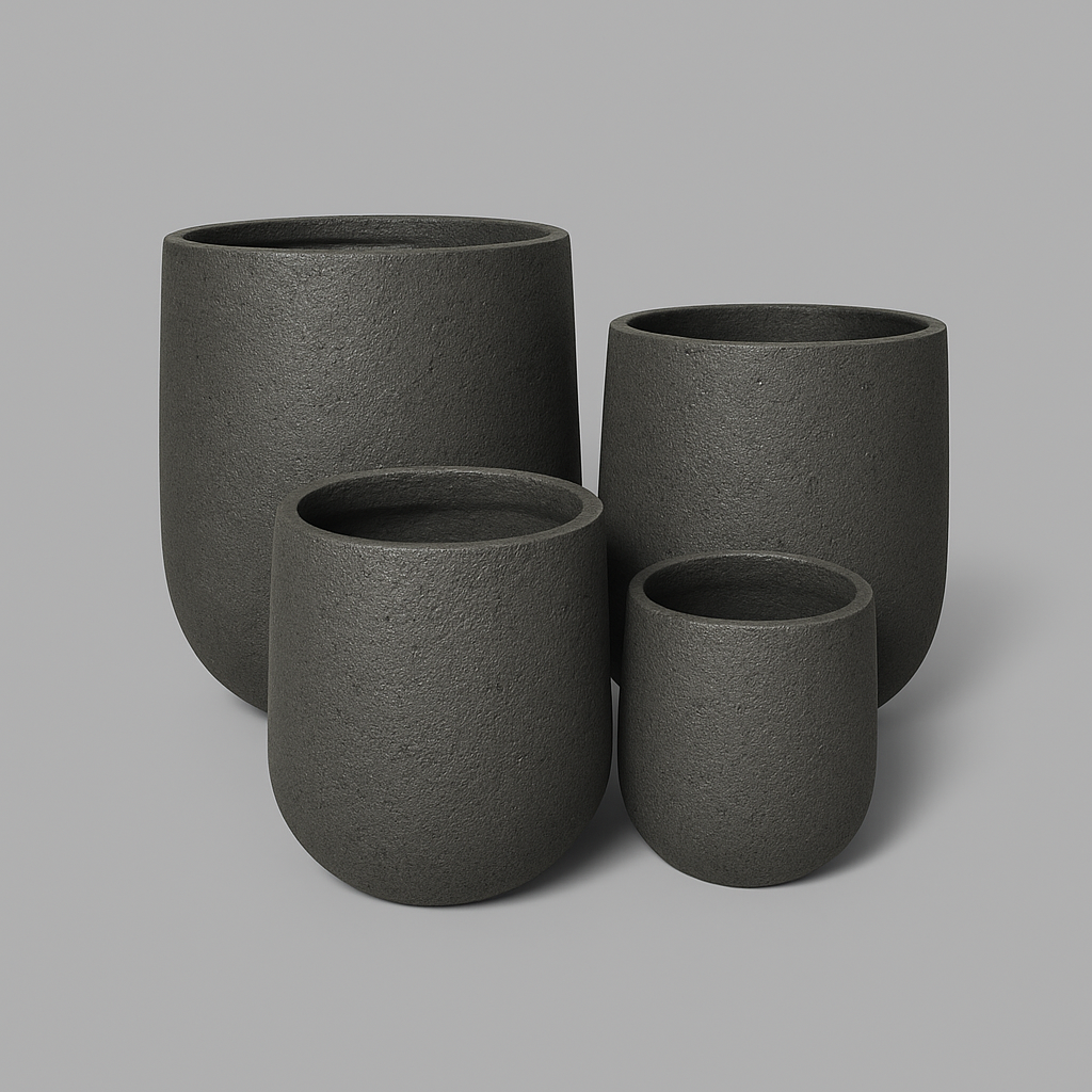 These uniquely designed bordeaux planters are produced by innovatively mixing cement and styrofoam. Not only is this a environmentally friendly product, but also lite-weight. The finished product will have the appearance of cement and small holes similar to styrofoam giving a beautiful lava rock look. Each planter comes with drainage holes. Choose from a variety of sizes, and available in either black or grey finish.  Perfect for outdoor/indoor use!