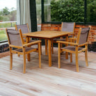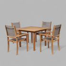 The Pearl Teak Stacking Armchairs are named after a chic urban district in Portland OR, a favorite hang out for today’s hip artists and musicians. Our outdoor furniture is made from ecologically harvested premium teak, cut from the heart of the tree, which makes it immune from deterioration from all types of weather. We start with choice cuts, straight, smooth and free of knots – the best quality available. We control drying by preparing the timber in our factory owned kilns. Safe in full sun exposure and we use time-honored techniques, including dowels and mortise and tenon joinery. New Teak has a natural honey golden color. Left untreated outdoors, exposed to sunlight and air, the honey color will soften to a light grey and after several years to a silvery patina, which embodies elegant beauty that improves with age. Occasional cleaning with mild soapy water and a soft brush to remove dirt and surface stains or it can be left with no maintenance at all.