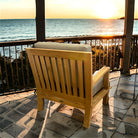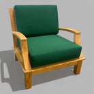 The Grande Teak Outdoor Club Chair with Olefin Cushion is a contemporary look from a classic style. Made from generously sized premium teak that is subtly curved and our combined lasting durability creates a great seating choice for families who love to be outdoors. The luxurious feel with a balance of strength and beauty creates furniture that will last for generations. Safe in full sun exposure and arrives semi-assembled. Stainless steel hardware is included. Safe in full sun exposure. Arrives flat packed and requires minor assembly. Hawaiian Discovery outdoor furniture is made from ecologically harvested premium teak, cut from the heart of the tree, which makes it immune from deterioration in weather of all kinds. We start with choice cuts, straight, smooth and free of knots – the best quality available. We control drying by preparing the timber in our factory owned kilns. We use time-honored techniques, including dowels and mortise and tenon joinery. All of our teak products are assembled with 304-grade stainless steel hardware. New Teak has a natural honey golden color. Left untreated outdoors, exposed to sunlight and air, the honey color will soften to a light grey and after several years to a silvery patina, which embodies elegant beauty that improves with age. Occasional cleaning with mild soapy water and a soft brush to remove dirt and surface stains or it can be left with no maintenance at all.