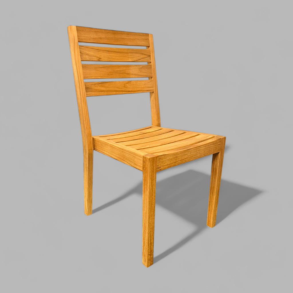 The Venice Teak Outdoor Side Chair is designed with space and practicality in mind. It has a distinctive contemporary look but is scaled for smaller patios and outdoor spaces. Combined lasting durability creates a great seating choice for families who love to be outdoors. The luxurious feel with a balance of strength and beauty creates furniture that will last for generations. Safe in full sun exposure. No assembly is needed. Hawaiian Discovery outdoor furniture is made from ecologically harvested premium teak, cut from the heart of the tree, which makes it immune from deterioration in weather of all kinds. We start with choice cuts, straight, smooth and free of knots – the best quality available. We control drying by preparing the timber in our factory owned kilns. We use time-honored techniques, including dowels and mortise and tenon joinery. All of our teak products are assembled with 304-grade stainless steel hardware. New Teak has a natural honey golden color. Left untreated outdoors, exposed to sunlight and air, the honey color will soften to a light grey and after several years to a silvery patina, which embodies elegant beauty that improves with age. Occasional cleaning with mild soapy water and a soft brush to remove dirt and surface stains or it can be left with no maintenance at all.