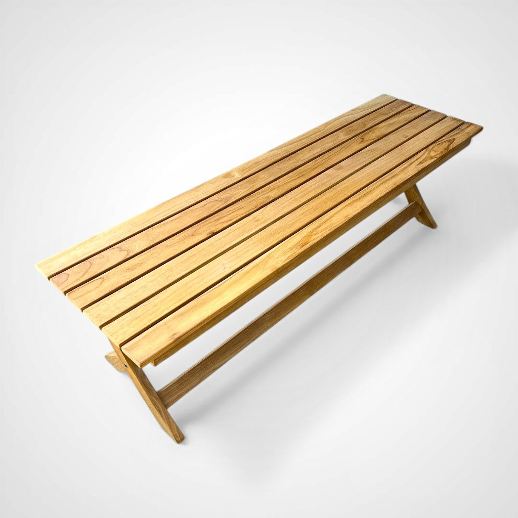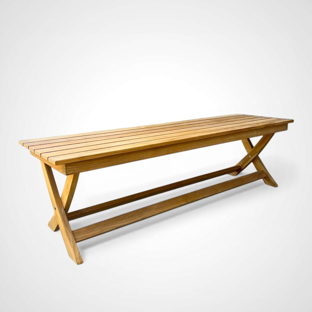 The Picnic 3-Person Teak Outdoor Bench has a traditional cross-leg design with extra lateral bracing to hold the biggest crowd of picnic lovers or children of all ages. It’s a casual bench that adds extra seating anywhere yet tucks away neatly under most tables. The luxurious feel with a balance of strength and beauty creates furniture that will last for generations.