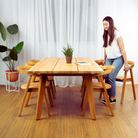 Simple yet stylish, the La Costa Wide Teak Plank Outdoor Dining Table effectively elevates the décor of your outdoor patio spaces with a clean construction. Made of solid and natural sand teak wood throughout, this piece consists of four legs that gently angle out as they connect with the wide, rectangular surface. Large enough for several people, this piece is the perfect focal point during social gatherings. Safe in full sun exposure. No assembly is needed. Hawaiian Discovery outdoor furniture is made from ecologically harvested premium teak, cut from the heart of the tree, which makes it immune from deterioration in weather of all kinds. We start with choice cuts, straight, smooth and free of knots – the best quality available. We control drying by preparing the timber in our factory owned kilns. We use time-honored techniques, including dowels and mortise and tenon joinery. All of our teak products are assembled with 304-grade stainless steel hardware. New Teak has a natural honey golden color. Left untreated outdoors, exposed to sunlight and air, the honey color will soften to a light grey and after several years to a silvery patina, which embodies elegant beauty that improves with age. Occasional cleaning with mild soapy water and a soft brush to remove dirt and surface stains or it can be left with no maintenance at all.